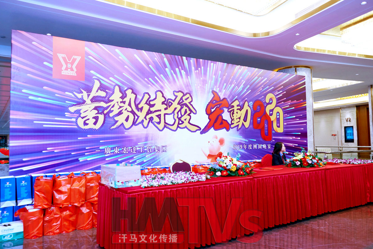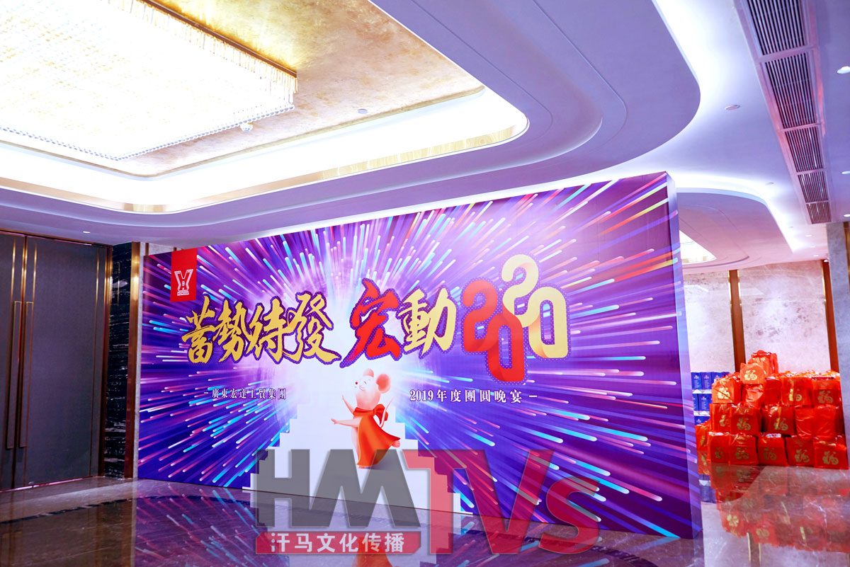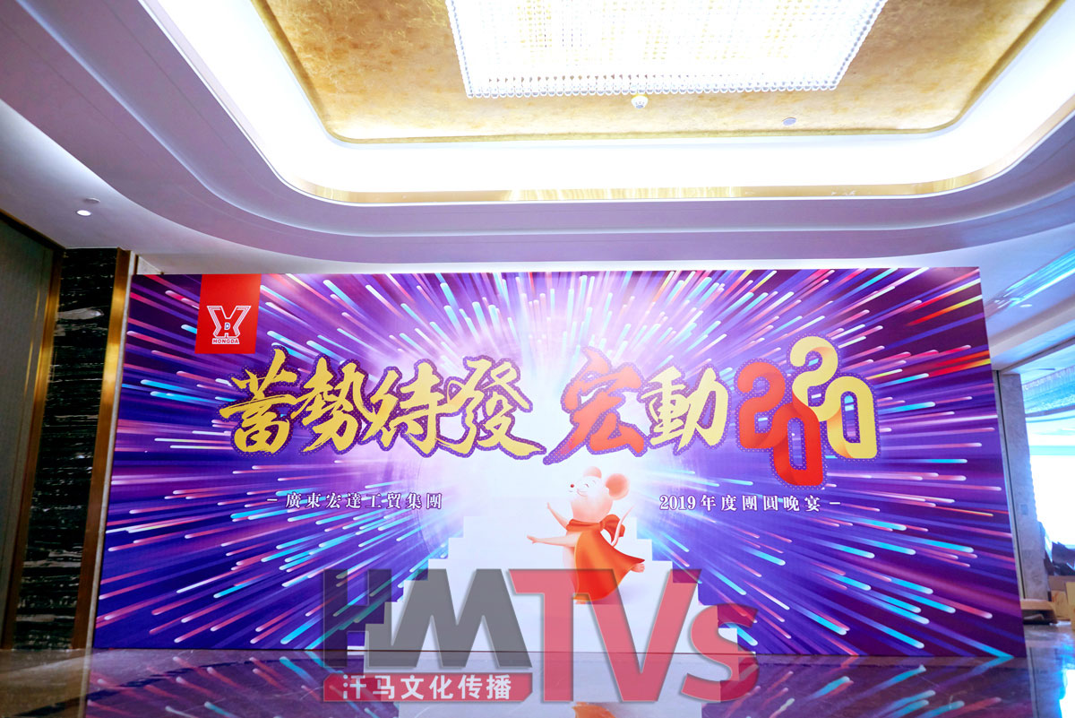 2020年1月13日東莞宏達集團年在東莞會展酒店舉行,整場活動布置全程由汗馬文化團隊執(zhí)行,活動現(xiàn)場布置、東莞燈光音響、東莞攝影攝像
